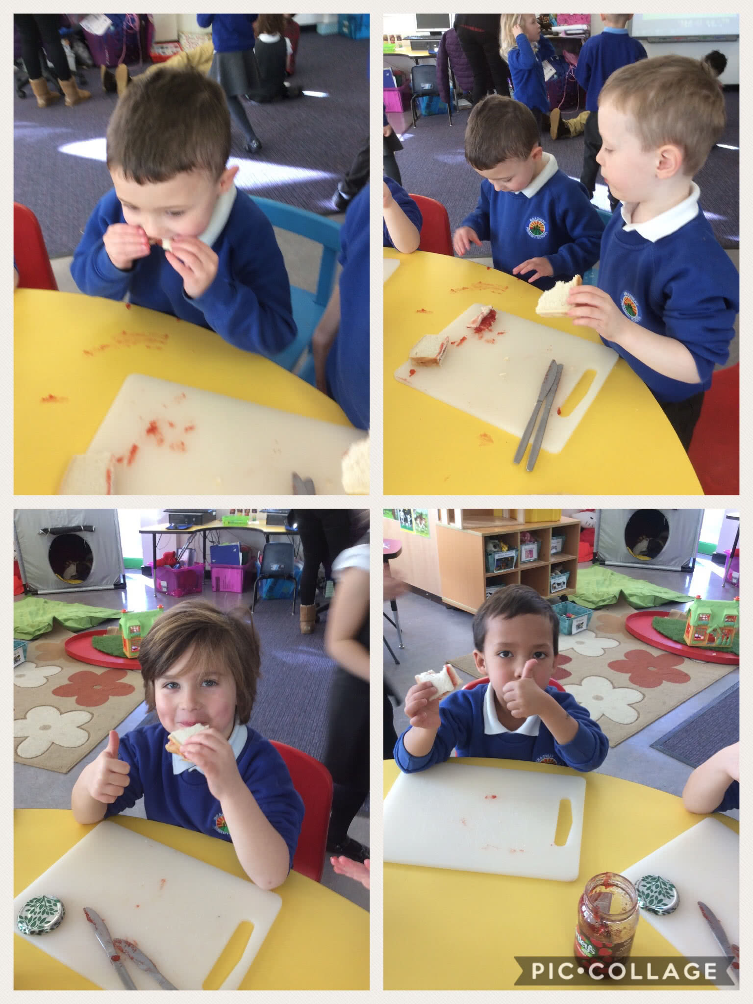 In literacy the children have been writing instructions about how to make a jam sandwich.